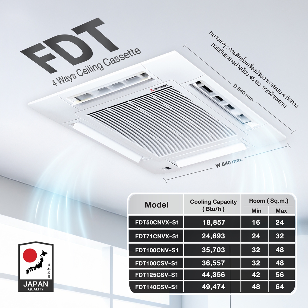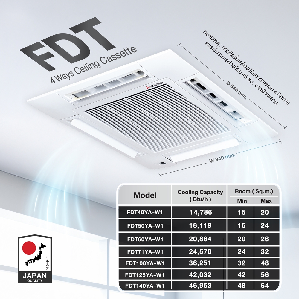 แอร์ฝังใต้ฝ้ากระจายลมสี่ทิศทาง CASSETTE TYPE Mitsubishi Heavy Duty